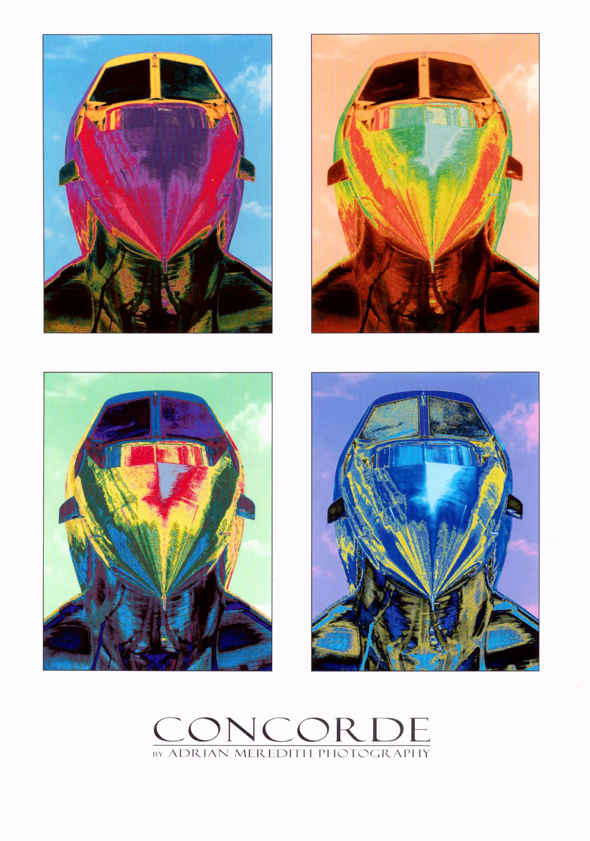 Large Andy Warhol style Poster of the Iconic Concorde Drop Nose.. Signed by Aviation Photographer Adrian Meredith size 33 inches deep by 26 inches wide...